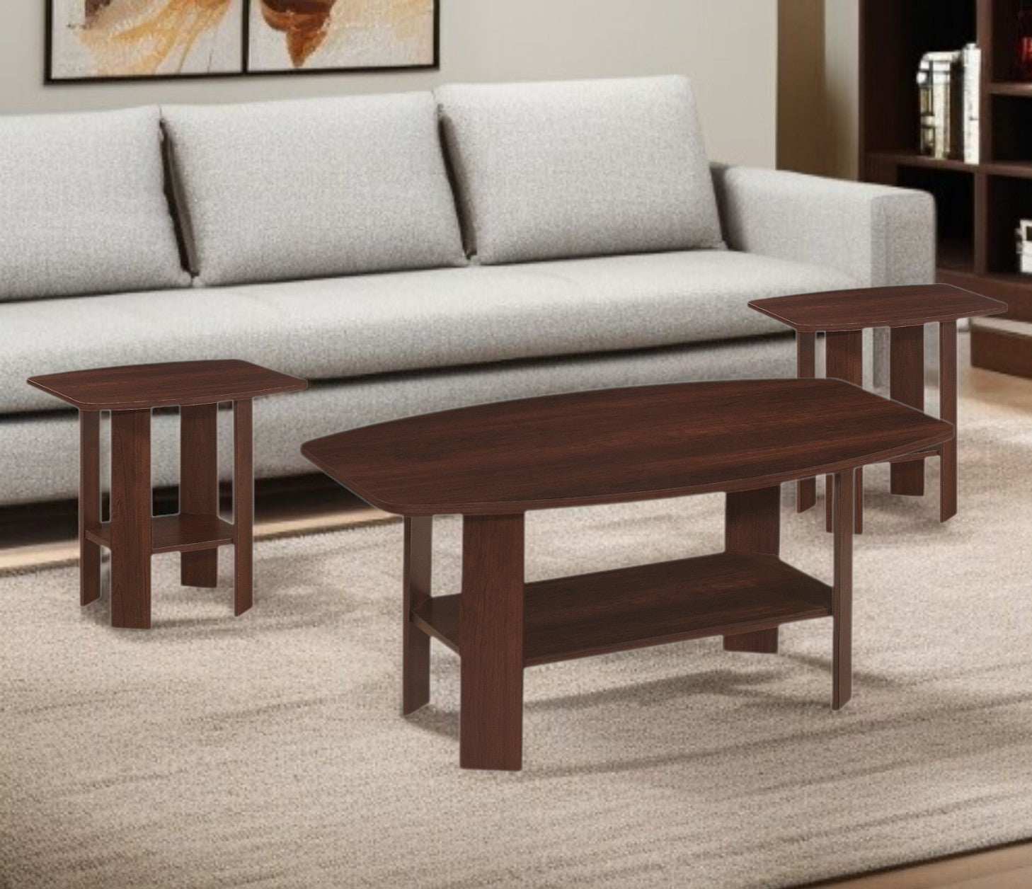 Set of Three 36" Dark Brown Coffee Table With Shelf